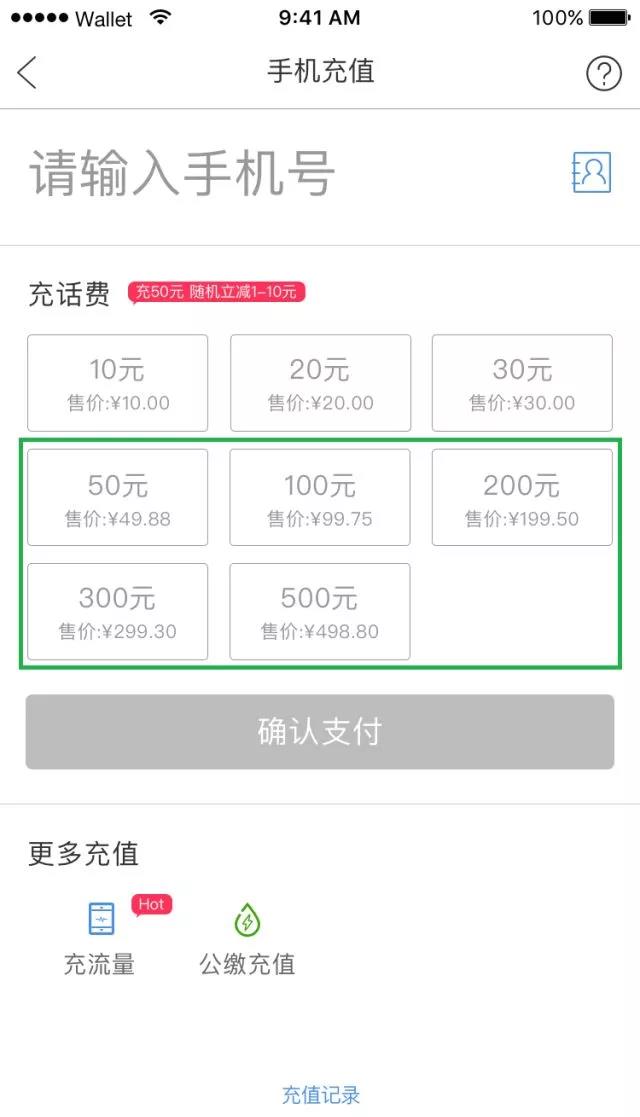 充话费满50随机立减