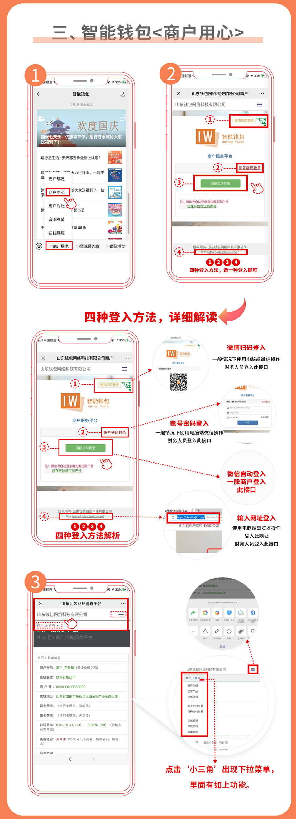 智能钱包对账平台分为电脑端和公众平台两种登录方式 ,使用条码付直联商户号登录 。